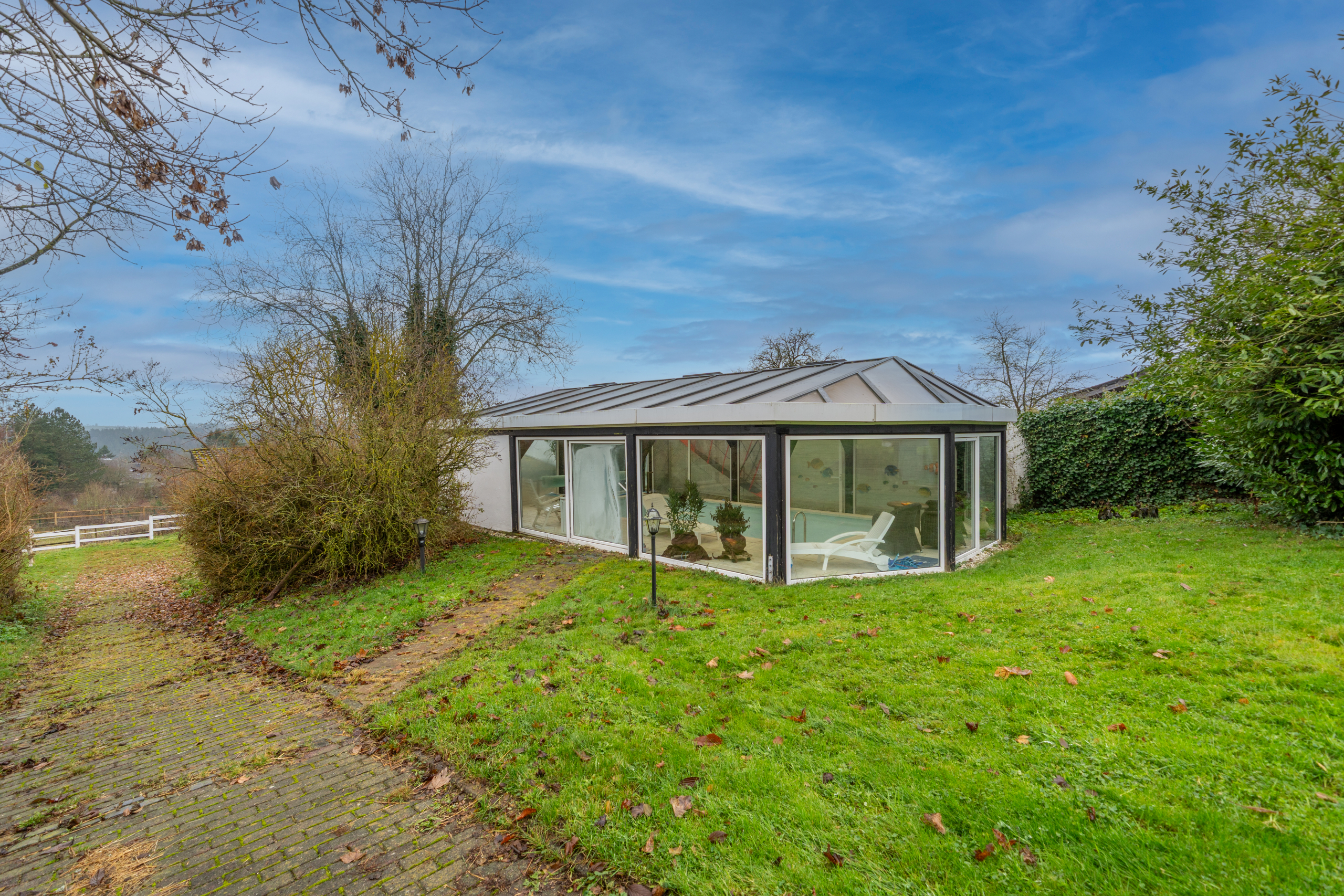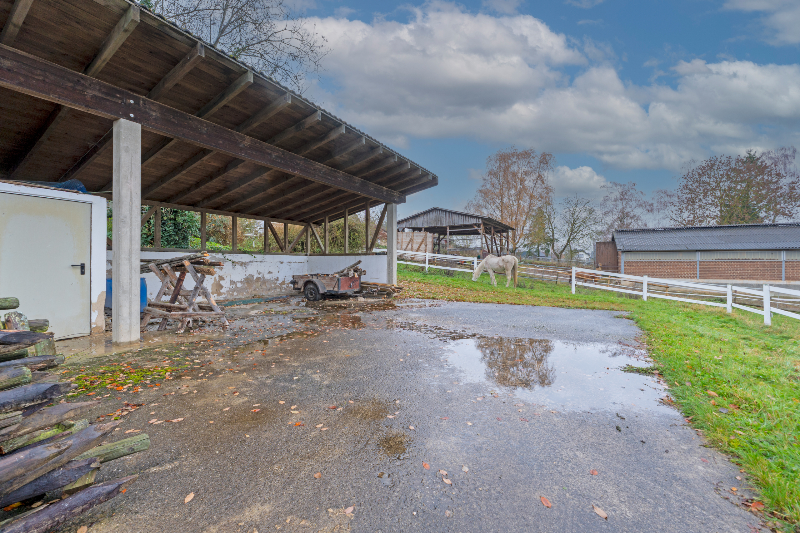 Das gesamte Anwesen umfasst über 3264 Quadratmeter direkt am Haus, ergänzt durch eine zusätzlich angebotene Koppel mit etwa 5860 Quadratmetern. Diese macht das Objekt besonders attraktiv für Pferdehaltung und tierfreundliche Nutzung. Stallungen, Scheunenbereiche, ein Round Pen, diverse Unterstände und eine große Schwimmhalle mit Pavillon bieten enorme Möglichkeiten für Hobby, Tiere und Freizeit.